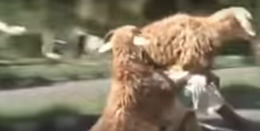تداول رواد مواقع التواصل الاجتماعى مقطع فيديو طريفا لشاب يقود دراجة فى أحد شوارع القاهرة برفقة خروفين، كان أحدهما يجلس خلفه على الدراجة ممسكا بظهره وكأنه إنسان، فيما كان الآخر جالسا على كتفيه.