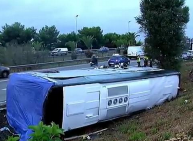 إصابة 24 في تحطم حافلة سياح في برشلونة.. صور