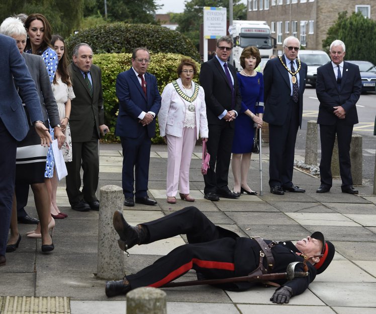 وسقط جوناثان دوجلاس هيوز، الذي يبلغ من العمر 72 عاما، وكان يرتدي زيه الاحتفالي مع سيفه، وسقط بسبب المطر والرصيف الرطب، وقد تقدم ويليام سريعا من اجل مساعدته.