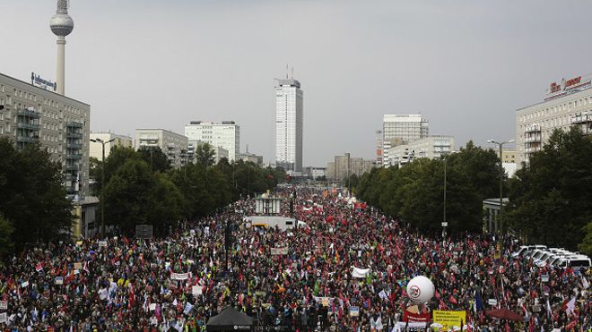 مظاهرات حاشدة في ألمانيا والنمسا لرفض اتفاقيات للتجارة الحرة مع الولايات المتحدة وكندا