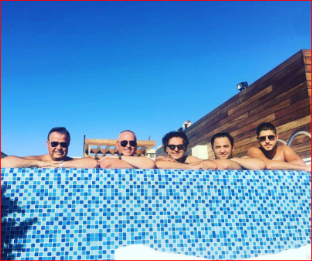 راغب علامة داخل حمام السباحة مع الأصدقاء والأقارب