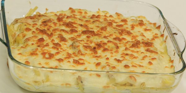 * تترك على النار حتى تثقل ثم يضاف اليها كريمة وجبنة شيدر وجبنة موتزاريلا