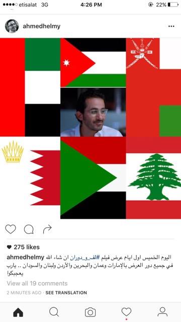 نشر الفنان أحمد حلمي من خلال صفحته الشخصية علي موقع التواصل الإجتماعي " إنستجرام " مجموعة اعلام لبعض الدول العربية التي سوف يعرض بها فيلم "لف ودوران " .