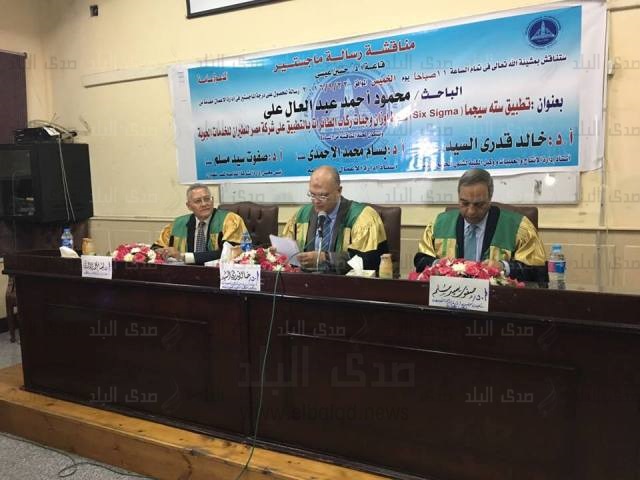 رئيس مصر للطيران يشارك فى مناقشة رسالة ماجستير لموظف بالشركة.. صورة