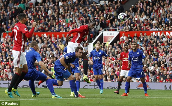 ويأتي دور الفرنسي بول بوجبا للرد علي كل منتقديه والمشككين في قيمته ليرتقي بشكل رائع فوق رؤوس المدافعين ليتمكن من وضعها علي يسار حارس ليستر سيتي في الدقيقة 42 في الشوط الأول.
