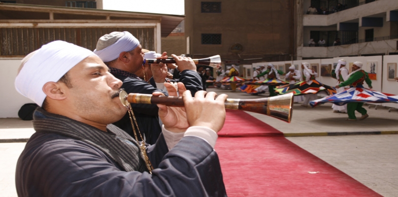 استقبال وزير الثقافة بالطبل البلدي خلال افتتاح قصر الأنفوشي
