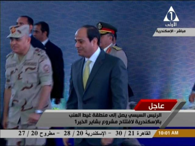 وصل الرئيس عبد الفتاح السيسي، إلى محافظة الإسكندرية، لافتتاح مشروع «بشاير الخير 1»، بمنطقة «غيط العنب»، ونقل المنطقة العشوائية إلى المساكن التي أقامتها القوات المسلحة بالقرب من ساحته.