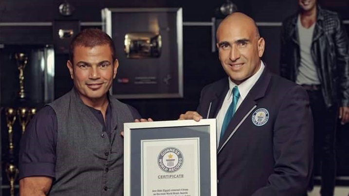 عمرو دياب أول مطرب عربي يسجل اسمه في موسوعة جينيس العالمية.. صور