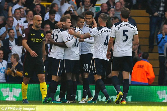 تمكن نادي توتنهام هوتسبر بقيادة المدرب الأرجنتيني الشاب ماوريسيو بوكيتينو من الظفر بثلاث نقاط ثمينة بعد فوزه علي منافسه مانشستر سيتي بقيادة المدرب الأسباني بيب جوارديولا بهدفين دون رد علي معلب "وايت هارت لين" في إطار منافسات الجولة السابعة من عمر مسابقة الدوري الإنجليزي "البريمرليج".
