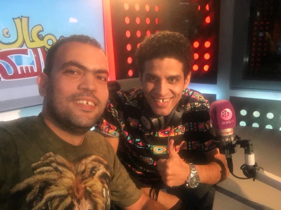 نشر الإعلامي خالد عليش صورة عبر حسابه على موقع التواصل الاجتماعي انستجرام تجمعه بالفنان الكوميدي حمدي الميرغني من كواليس برنامج "معاك ع السكة" على نجوم إف إم.