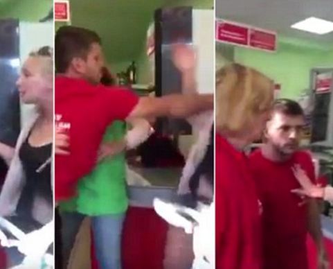 حارس أمن يضرب روسية داخل سوبر ماركت.. فيديو