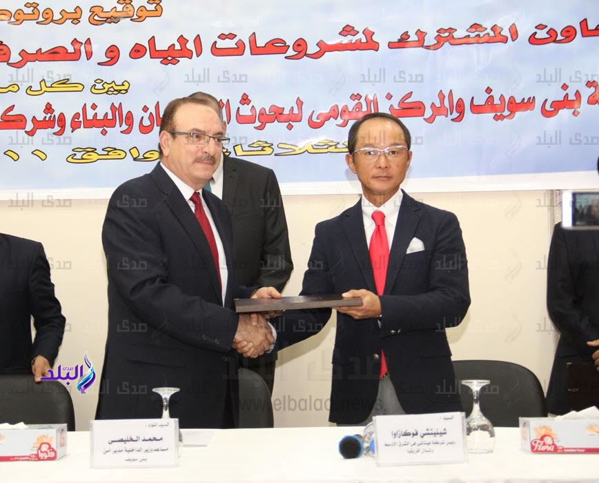 شهد توقيع البروتوكول ماجا زاكي المستشار الاقتصادي للسفارة اليابانية والمهندس "ممدوح رسلان" رئيس مجلس إدارة الشركة القابضة لمياه الشرب والصرف الصحي، و"شينشتي فوكازاوا" رئيس شركة هيتاشي في الشرق الأوسط وشمال افريقيا، ووفد من الهيئة العربية للتصنيع، والدكتورة هالة حجازي، مدير معهد الهندسة الصحية بمركز بحوث الاسكان والبناء، والمهندس محمد سعيد، رئيس شركة مياه الشرب والصحى ببني سويف.