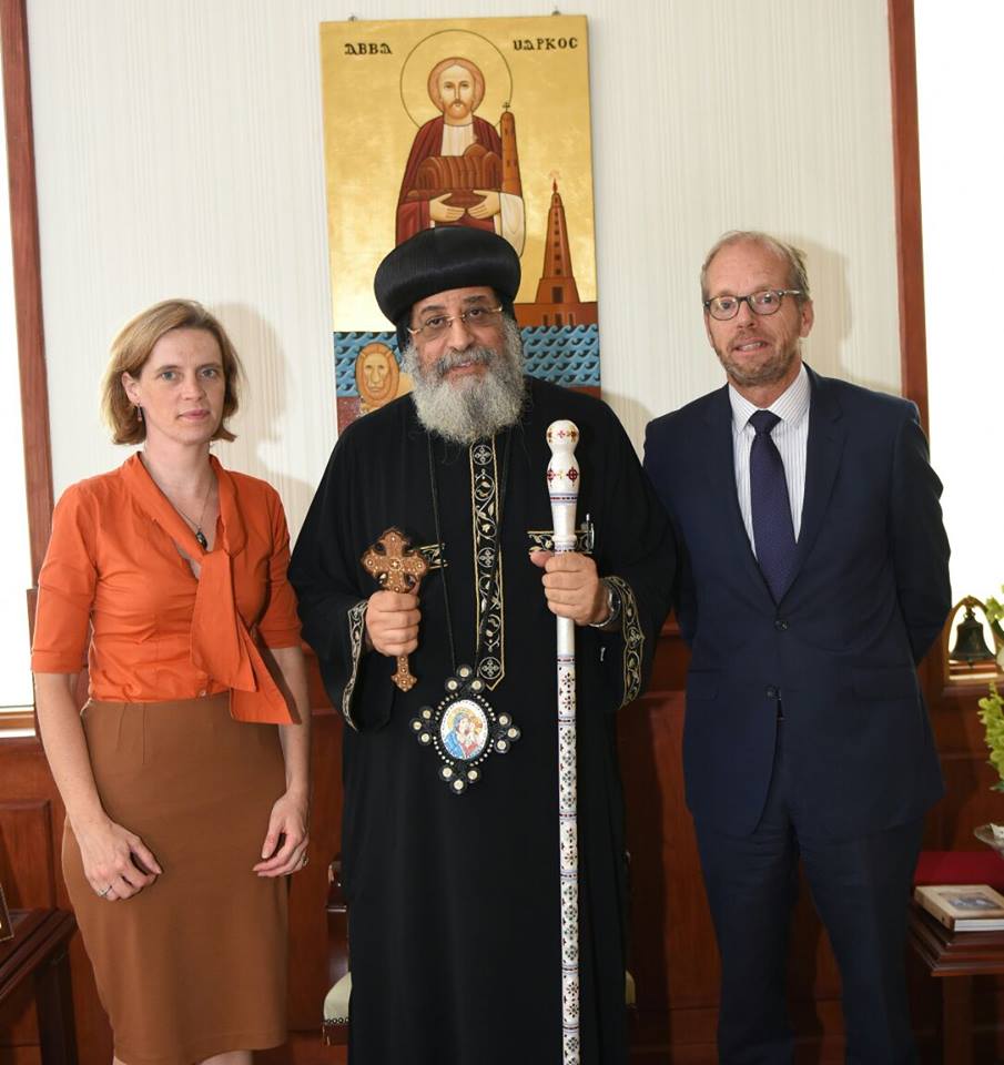 استقبل البابا تواضروس الثاني، بابا الإسكندرية وبطريرك الكرازة المرقسية، اليوم بالمقر البابوي اليوم سيبيللى دو كارتييه دى إيف سفيرة بلجيكا الجديدة ولورينز ويستهوف سفير هولندا الجديد بالقاهرة في إطار زيارات التعارف التي يجريها السفيران الجديدان.
