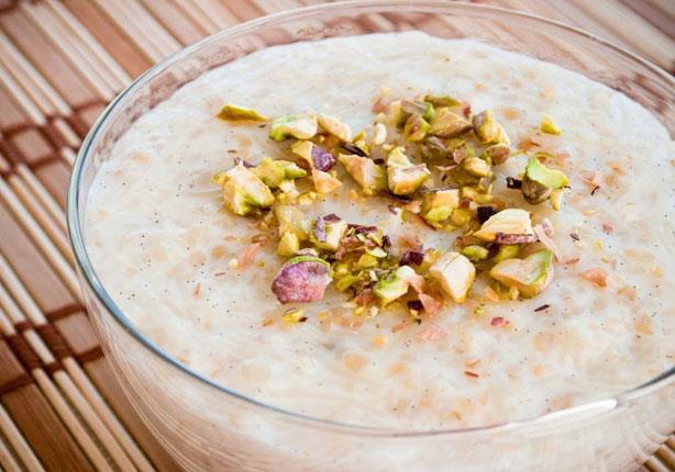 - بعد النضج نصفيه من المياه ونضيف له اللبن والفانيليا ونجعله يغلى 5 دقائق ثم نضيف الفانيليا والسكروالقشطة.