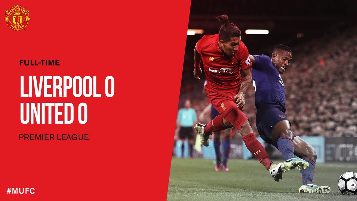 تعادل فريقا ليفربول ومانشستر يونايتد بدون أهداف فى المباراة التى جرت بينهما اليوم الإثنين على ملعب الأنفيلد رود , ضمن منافسات الجولة الثامنة من بطولة الدورى الإنجليزى الممتاز لكرة القدم .
