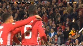 أحرز بول بوجبا لاعب مانشستر يونايتد، الهدف الأول في مرمى فنربخشة، بالدقيقة 31 من الشوط الأول، ثم أحرز أنتوني مارتيال لاعب مانشستر يونايتد الهدف الثاني في مرمى فنربخشة، بالدقيقة 34، بينما أضاف الهدف الثاني له، والثالث للمان يونايتد اللاعب بول بوجبا بالدقيقة 45.