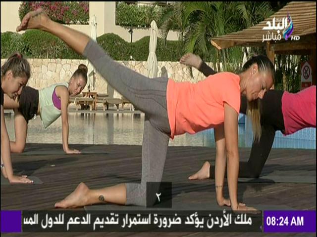 عرض برنامج "صباح البلد" المذاع على فضائية "صدى البلد"، والذي تقدمه الإعلامية رشا مجدي والإعلامي أحمد مجدي، والإعلامية هند النعساني، صباح اليوم، الاثنين، الفقرة الرياضية مع "فالنتينا"، من فندق "كليوباترا ريزورت" بشرم الشيخ، التي قدمت خلال فقرة اليوم، بعض التمارين الرياضية لمنطقة الظهر.