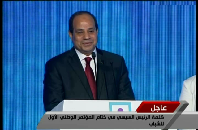وأشار السيسي إلى أن مصر دولة شابة وشبابها بقدراتهم وحجمهم الكبير كما ونوعا يمثلون ثروة قومية لأمتنا يجب استثمارها وتوظيفها لتكون دافعة لمسيرة التنمية، وضلعا أساسيا من أضلاع منظومة الدولة، وطبقا لما أجرينا لأبحاث بين آراء الشباب، فإن الدولة كونت صورة واضحة جلية عن أنماط اهتمامات شرائح الشباب المختلفة، وتبلورت لديها الرؤية الكاملة حول سبل مراعاة قضاياهم وأولوياتهم المختلفة مع الحفاظ على قنوات اتصال حيوية وفعالة بينهم وبين الدولة، قائمة على الحوار وتبادل الرؤى على أسس موضوعية.