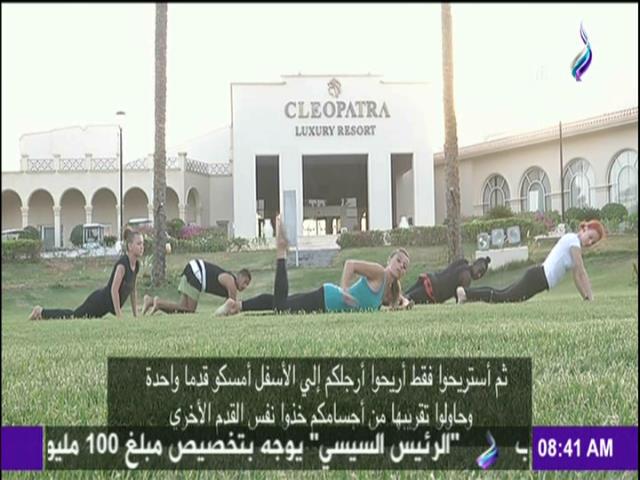 عرض برنامج "صباح البلد"، المذاع على فضائية "صدى البلد"، الذي يقدّمه الإعلامي أحمد مجدي والإعلامية رشا مجدي، صباح اليوم، الأحد، الفقرة الرياضية مع "فالنتينا"، من فندق "كليوباترا ريزورت" بشرم الشيخ، والتي قدمت خلال فقرة اليوم، أفضل التمارين الرياضية لتقوية عضلات الذراعات وعضلات الجسم.