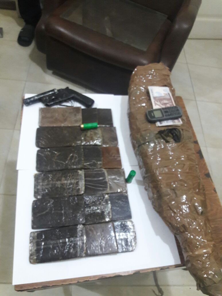 عقب تقنين الإجراءات تم ضبطه حال تواجده بدائرة القسم وبحوزته 18 طربة لمخدر الحشيش تزن 2 كيلو جرام ولفافة لنبات البانجو المخدر تزن 3 كيلوجرامات ومبلغ مالى 1700 جنيه.