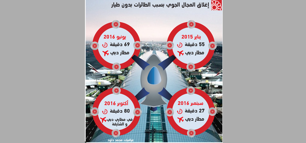 وأوضح المدفع لـ«الإمارات اليوم»، أن «17 رحلة جوية أخرى تأخرت في الإقلاع جراء إغلاق المجال الجوي لمدة تزيد على الساعة»، مشيرًا إلى أن «نشاط الطائرات بدون طيار غير المرخصة يؤثر في سلامة الأجواء، فضلًا عن الأضرار الاقتصادية الناجمة عن توقف الحركة الجوية».