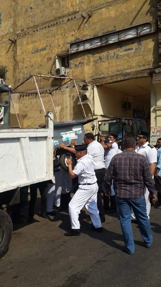 حملة مكبرة لتطهير شارعي الجمهورية وعلى الكسار من الباعة الجائلين.. صور