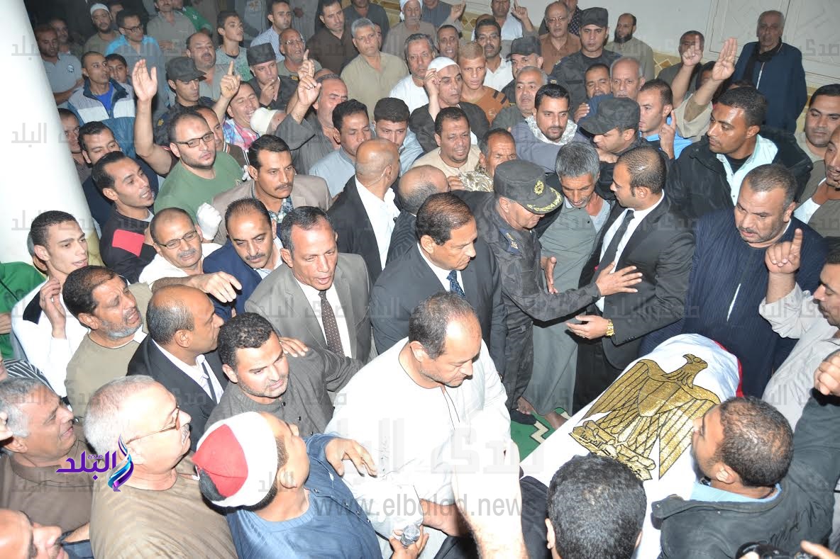 وردد أهالي القرية والقرى المجاورة هتافات ضد الإخوان والإرهاب ومطالبة للقصاص لدماء الشهيد عقب أداء صلاة الجنازة بمسجد السلام فى قلب القرية مسقط رأس الشهيد حتي مثواه الأخير بمقابر العائلة .