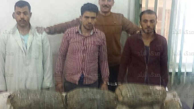 بتفتيش السيارة عثر بصندوقها الخلفي على " 10 " لفافات كبير الحجم لنبات البانجو المخدر وزنوا قرابة 30 كيلو جرام مخبأة أسفل بعض كراتين الأدوات المنزلية.