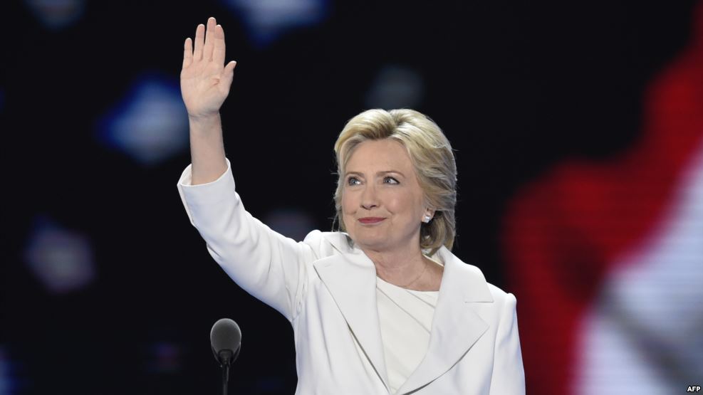 وفور دخول هيلاري كلينتون لإلقاء كلمتها ضجت القاعة بالتصفيق لمدة دقيقة كاملة، وقدمت هيلاري الشكر لما لاقت من ترحيب وتصفيق كبير من جانب الحاضرين.