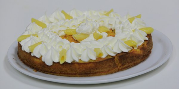 * تزين الكيكة بالكريم شانتى والمكرونة وتقدم