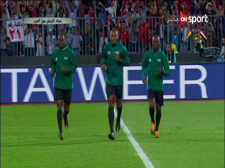 يجري الآن طاقم الحكام الجابوني عمليات الإحماء بملعب استاد برج العرب قبل انطلاق مباراة مصر وغانا على ملعب استاد برج العرب فى الإسكندرية فى إطار الجولة الثانية بتصفيات مونديال روسيا 2018.