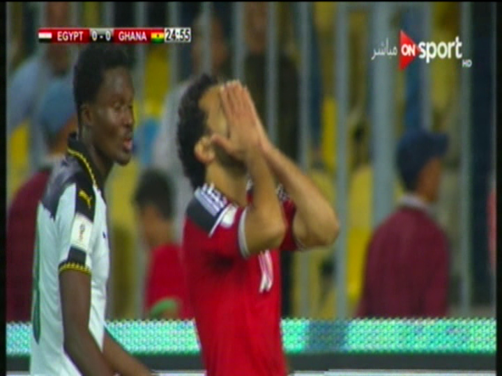 تسبب محمد الننى لاعب وسط منتخبنا الوطنى فى حصول منتخب غانا على ضربة حرة مباشرة بالقرب من منطقة جزاء منتخبنا الوطني، تصدى لها عصام الحضرى ببراعة بعدما سدد مهاجم غانا الكرة بقوة على مرمى منتخبنا.