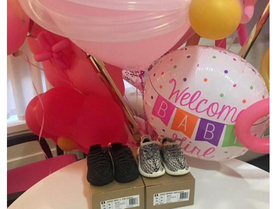 وكانت الهدية عبارة عن زوجين من حذاء "يزيس" العلامة التجارية الشهيرة للأحذية الرياضية، وكان الزوجان أحدهما باللونين الأبيض والأسود والآخر بالأسود، وتزينهما بالبالونات الوردية. وعلّق "روب" قائلًا: «شكرًا للزوجين كيميي على أحذية ييزي».