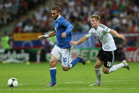 اتسمت مجريات الشوط الأول بالندية والقوة من جانب لاعبى الماكينات الالمانية والآزورى الإيطالى وتبادل الفريقان الهجمات على المرمى رغبة فى احراز هدف التقدم.