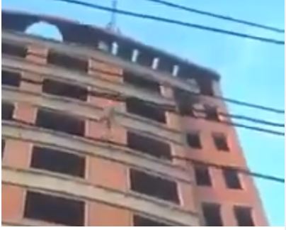 حيث صعد إلى أحد الطوابق العليا ولكن ليس على السلالم أو المصعد، ولكن على "ونش" رفع مواد البناء، بعدما أمسك به جيدًا، وصعد بكل سلاسة.
