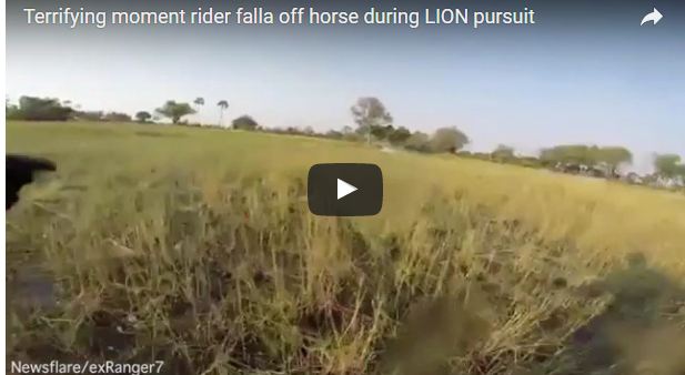 نشرت صحيفة ديلي ميل البريطانية مقطع فيديو لسائح نجا بإعجوبة قبل أن يقع وجبة دسمة لاسد جائع في الغابة بعدما سقط من على ظهر الحصان؟.
