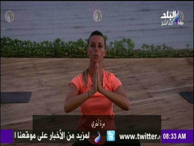 عرض برنامج "صباح البلد" المُذاع على فضائية "صدى البلد"، والذي يقدمه الإعلامي أحمد مجدي والإعلامية رشا مجدي، والإعلامية هند النعساني، صباح اليوم، الخميس، الفقرة الرياضية مع "فالنتينا"، من فندق "كليوباترا ريزورت" بشرم الشيخ، التي قدمت خلال فقرة اليوم، بعض تدريبات اليوجا لشد الجسم.