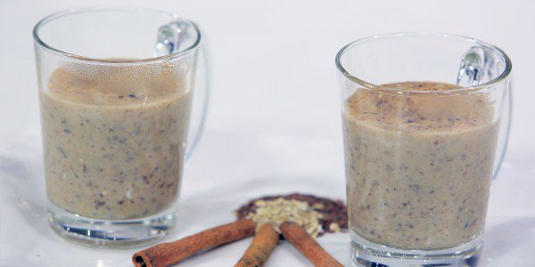 * ضعي اللبن على النار مع الشوفان المطحون والقرفة وقلبي حتى يثقل القوام قليلا