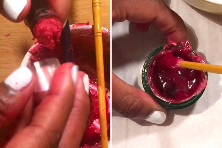 إذا رغبت فى اللون الأحمر الحى تضيف الطين الأحمر وبعض الفحم الطبيعى للبنجر فهو يعطيكى لون ماك الأحمر المرصع ثم صب الخليط فى قوالب أحمر الشفاه وضعه فى الثلاجة.