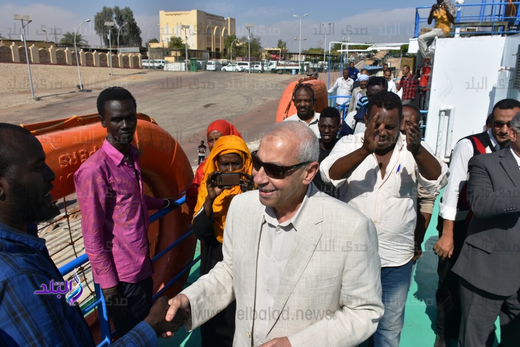 استقبل اللواء مجدى حجازى محافظ أسوان وسط أجواء من الفرحة والترحاب والزغاريد 449 راكبا من المسافرين العالقين بمدينة أبو سمبل السياحية منذ يوم السبت الماضى من بينهم أثنين مصريين، والذين تم نقلهم من أبو سمبل إلى مدينة أسوان مجانًا دون دفع أى رسوم مالية على متن الباخرة ساق النعام عبر ميناء السد العالى شرق الدولى وذلك بحضور اللواء بحرى مصطفى عامر رئيس هيئة وادى النيل للملاحة النهرية بجانب السر الأمين محمد نائب رئيس الهيئة وممثل الجانب السودانى، بالإضافة إلى العميد ياسر عثمان مدير عام الميناء .