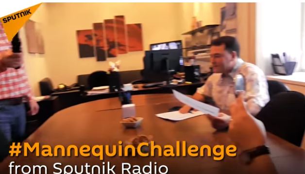 ابرز موقع سبوتنك مقطع فيديو يظهر فيه عددا من موظفيه في مكتب راديو سبوتنك الروسي، حيث شهد "تحدي المانيكان" في فيديو تجاوز الدقيقتين.
