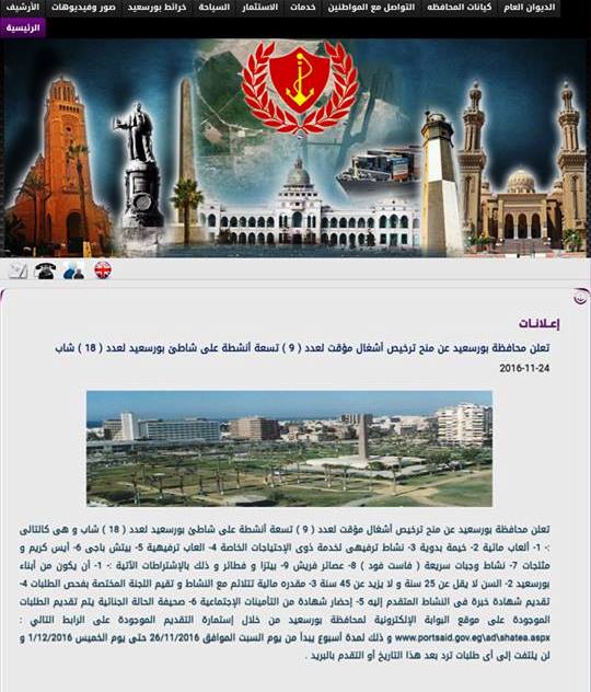 واستكملت المحافظة في بيانها ان اللجنة المختصة ستقوم بفحص الطلبات ، منوهة على الراغبين للتقدم للمشروع بتقديم الطلبات الموجودة على موقع البوابة الإلكترونية لمحافظة بورسعيد من خلال إستمارة التقديم الموجودة على الرابط www.portsaid.gov.eg\ad\shatea.aspx وهو الخاص بالبوابة الاليكترونية للمحافظة وذلك لمدة أسبوع يبدأ من يوم السبت الموافق 26 نوفمبر الحالي وحتى يوم الخميس 1ديسمبر القادم .