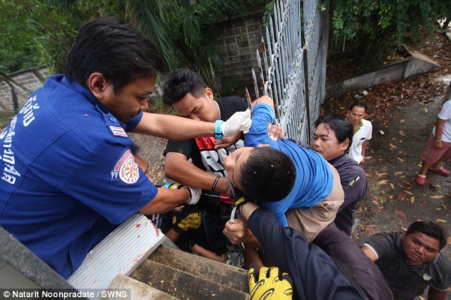 كاد أحد التلاميذ في تايلاند أن يفقد حياته، بعد أن تعلقت ملابسه في أحد الأعمدة المعدنية أثناء تسلقه لأحد الأسوار لرؤية صديقه، حسبما أبرزت صحيفة ديلي ميل البريطانية.