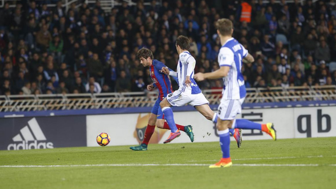 تعادل فريقا برشلونة وريال سوسيداد ايجابيا بهدف لكل منهما فى المباراة التى اقيمت بينهماعلى ملعب أونيتا في إطار الأسبوع الـ 13 بدوري الليجا الإسباني.