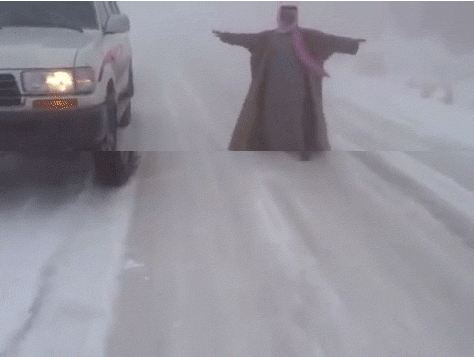 نشرت صحيفة "مترو" البريطانية مقطع فيديو تداوله الرواد على موقع التواصل الاجتماعى الشهير "تويتر" يظهر أحد الشباب السعودى، وهو يتزحلق على الجليد، بعد هبوط الجليد فى مدينة "شقرة" شمال منطقة "تبوك".