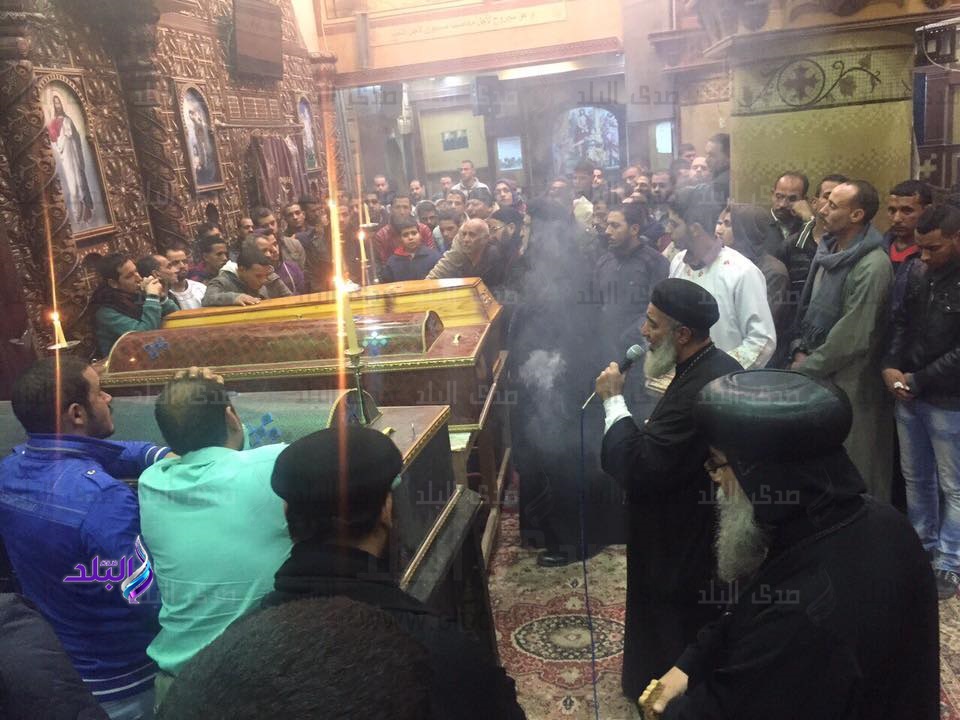 تقدم الانبا مكاريوس الأسقف العام بالمنيا وأبو قرقاص، المشيعين في جنازة أسرة رضا عشم وزوجته شريهان سمير وأطفاله الثلاثة "أبانوب وفادى وشادى" وذلك من كنيسة الأمير تادرس بأبوقرقاص البلد جنوب المنيا، والذين لقوا مصرعهم داخل مسكنهم بعد تعرضهم لحالة اختناق أودت بحياتهم.