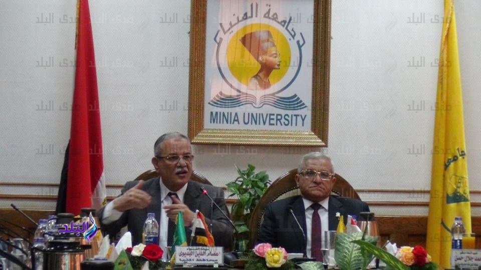 وومن جانبه أكد اللواء عصام البديوي، محافظ المنيا، بان المحافظة لا تعمل بمعزل عن الجامعة، وأنها في تعاون دائم معها، بعقول اساتذتها وابنائها في التطوير والتنمية داخل المحافظة، والذي مثله التعاون المثمر، في مؤتمر تنمية السياحة بالجامعة، ومؤتمر التنمية الاقتصادية بالمحافظة، الذي نوقش فيهما مشاكل المحافظة، والوصول إلي توصيات تساعد في مواجهة وحل هذه المشاكل.