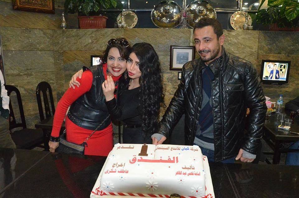 احتفلت الفنانة مروة اللبنانية والفنان محمد نجاتى وأحمد كرارة بتورتة فيلم " الفندق "