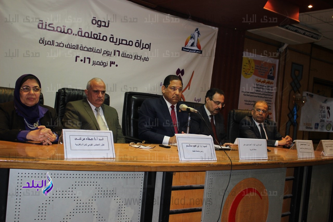 جاء ذلك فى كلمته بالندوة التى استضافتها كلية الطب بجامعة طنطا فى احتفالية المجلس القومى للمرأة فرع الغربية بمناسبة اليوم العالمى للقضاء على العنف ضد المرأة تحت عنوان "امرأة مصرية متعلمة متمكنة".