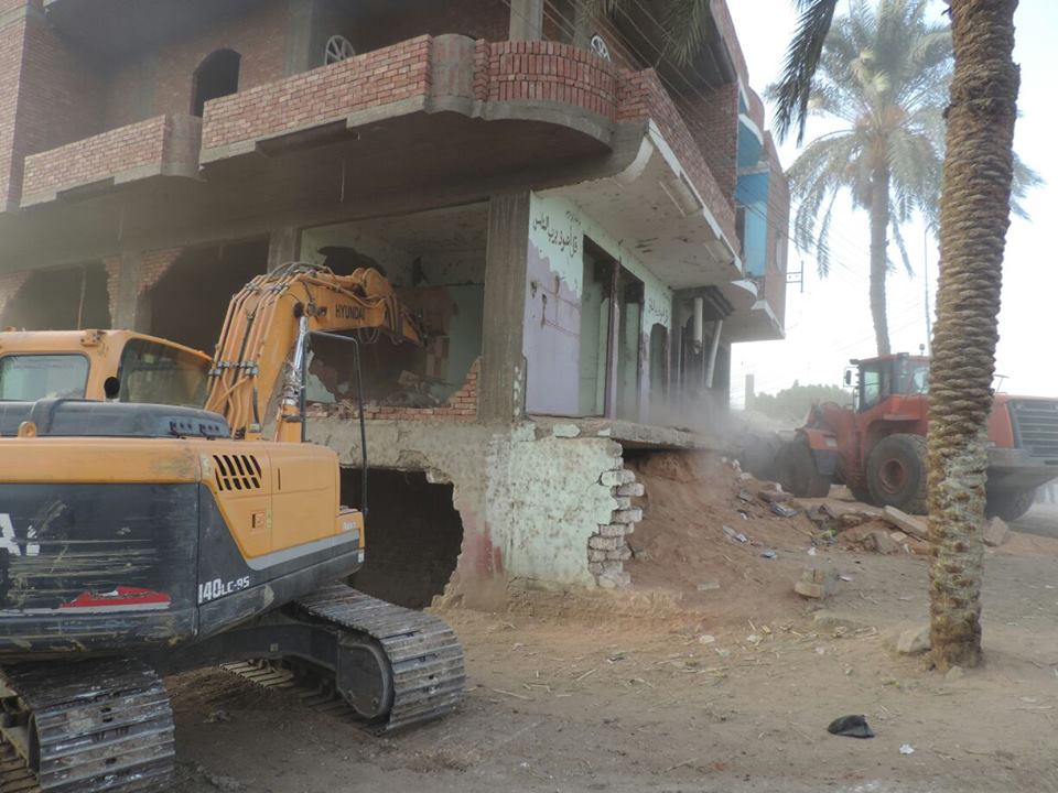 إزالة منزل 3 طوابق و14 بيتا على أراضى الرى وحرم الطريق بالمنيا.. صور
